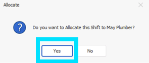 We can choose to allocate someone to a shift by clicking their name and then clicking the allocate button (blue person on paper icon).