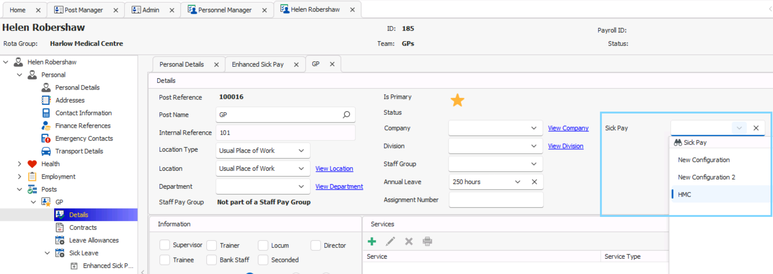 In Personnel Record>Posts>Sick Leave> Enhanced Sick Pay , if you have the correct administrator permissions, you can view the remaining Enhanced Sick Pay allowances.
