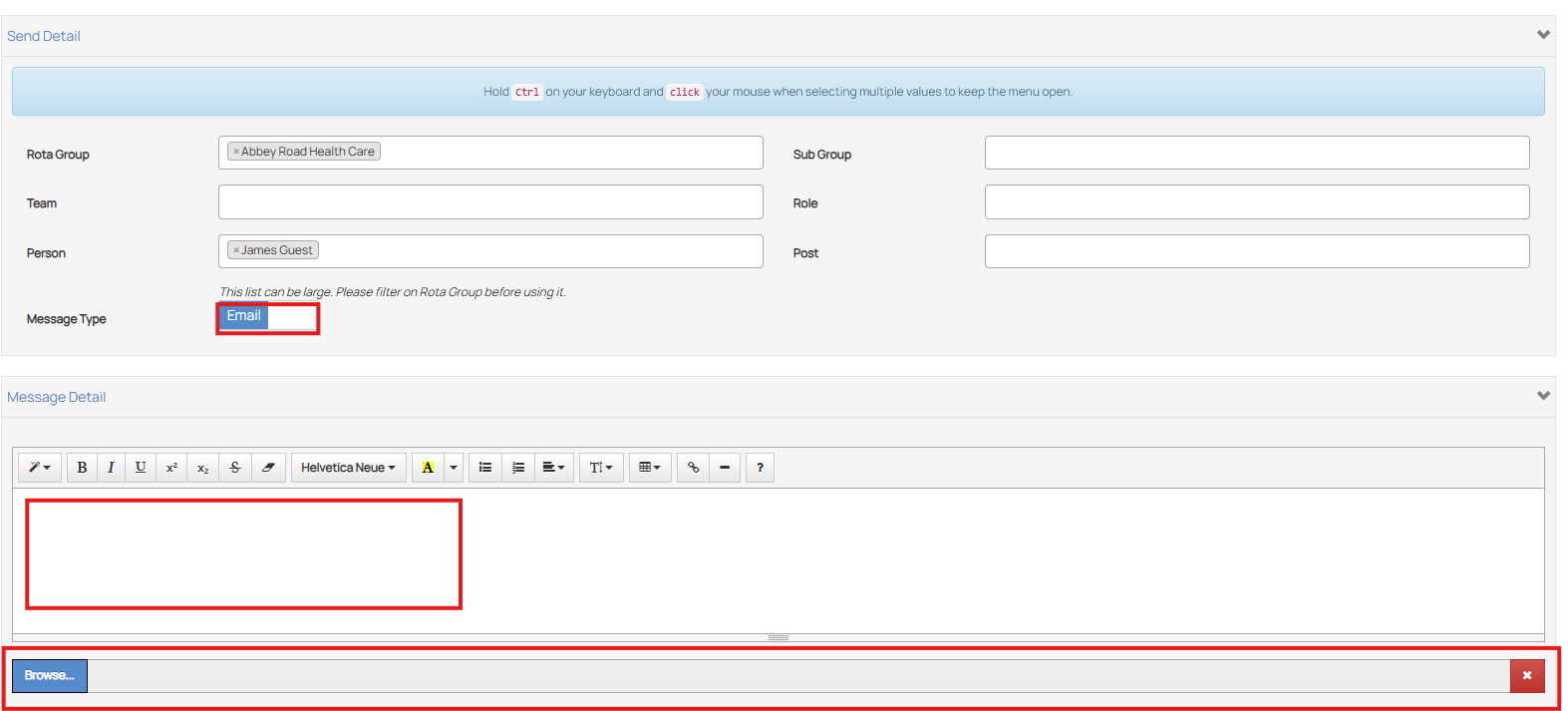 Use the 'Message Detail' section to add your own message to the email/SMS. If you do not add a personalised message an automated message will be in the email.
