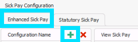 - To create a new enhanced configuration, ensure you are on the 'Enhanced Sick Pay' tab, click the 'green plus button' next to the 'Configuration Name' heading.