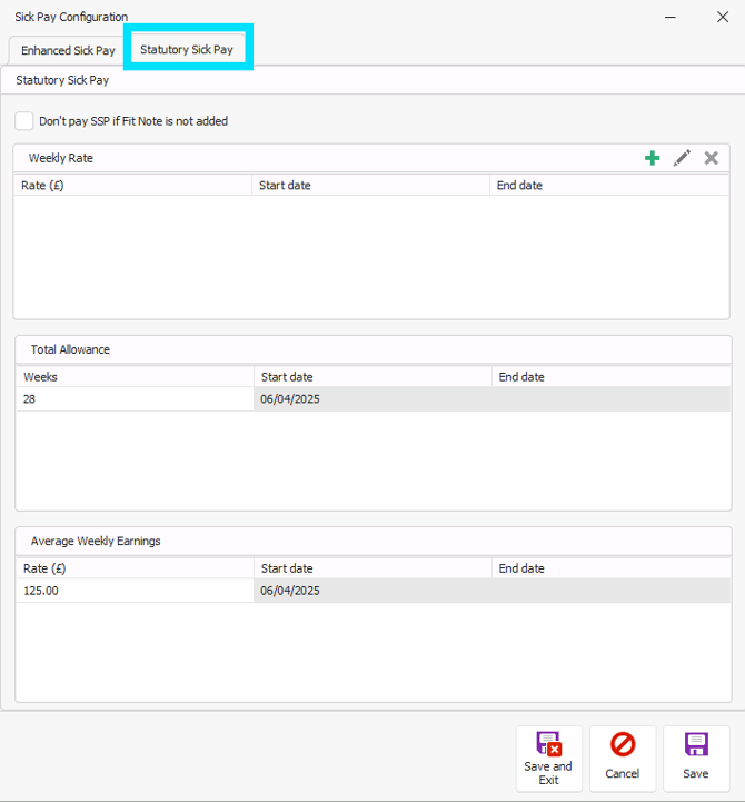 🛠️ Sick Pay Configuration does not currently include Statutory Sick Pay calculations. It is currently available to configure only. Calculations required for SSP contributions towards Sickness Adjustments in RotaMaster will come in later releases.