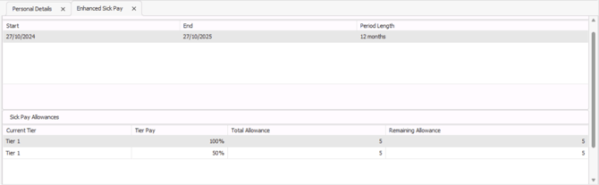 On this screen, you will see the different tiers of your enhanced sick pay, and how much allowance is remaining for each tier.