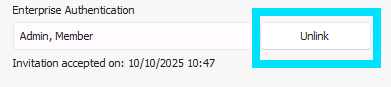 Once in the user details screen, you will need to click 'Unlink' against the 'Enterprise Authentication'
