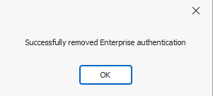 You will received a notification to confirm the 'Enterprise Authentication' has been successfully removed. Click 'Okay'