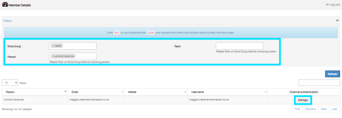 Search for the staff member you need to unlink a device for, and click 'Manage'