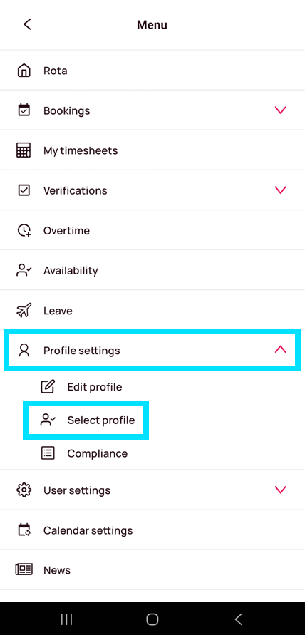 This will then show each of your profiles, with a tick icon being against the profile you are currently on. You will then need to select the profile you wish to switch too.