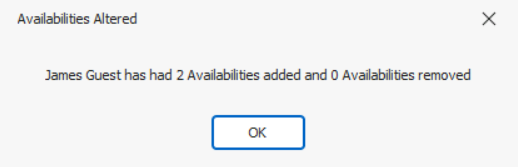 A message will then display, confirming that availabilities have been added for that member of staff.