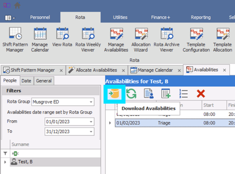 ❗If you are using version 156.2 and above of RotaMaster, availabilities will automatically download into the Rota>Manage Availabilities area.